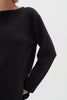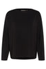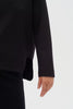 Black blouse with long sleeves, round neckline, and wide slits on both sides. The blouse has a regular fit. The model is 178 cm and wears a size S / 36.